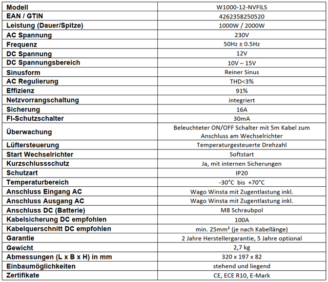 Mit diesem Wechselrichter (reiner Sinus) können Sie z.B. E-Bikes + Laptops laden, Reise-Haar-Fön oder Wasserkocher usw. bis 1000W auch im Wohnmobil nutzen (egal ob an Landstrom oder Autark).