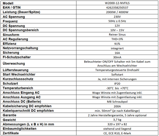 Mit diesem Wechselrichter (reiner Sinus) können Sie z.B. E-Bikes + Laptops laden, Reise-Haar-Fön oder Wasserkocher usw. bis 2000W auch im Wohnmobil nutzen (egal ob an Landstrom oder Autark).
