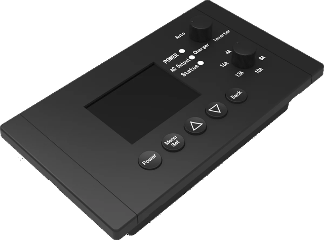 Beleuchtetes Display mit ON/OFF, Programmwahl, Landstrombegrenzung, Ladegeräteinstellung & Statusanzeige inkl.